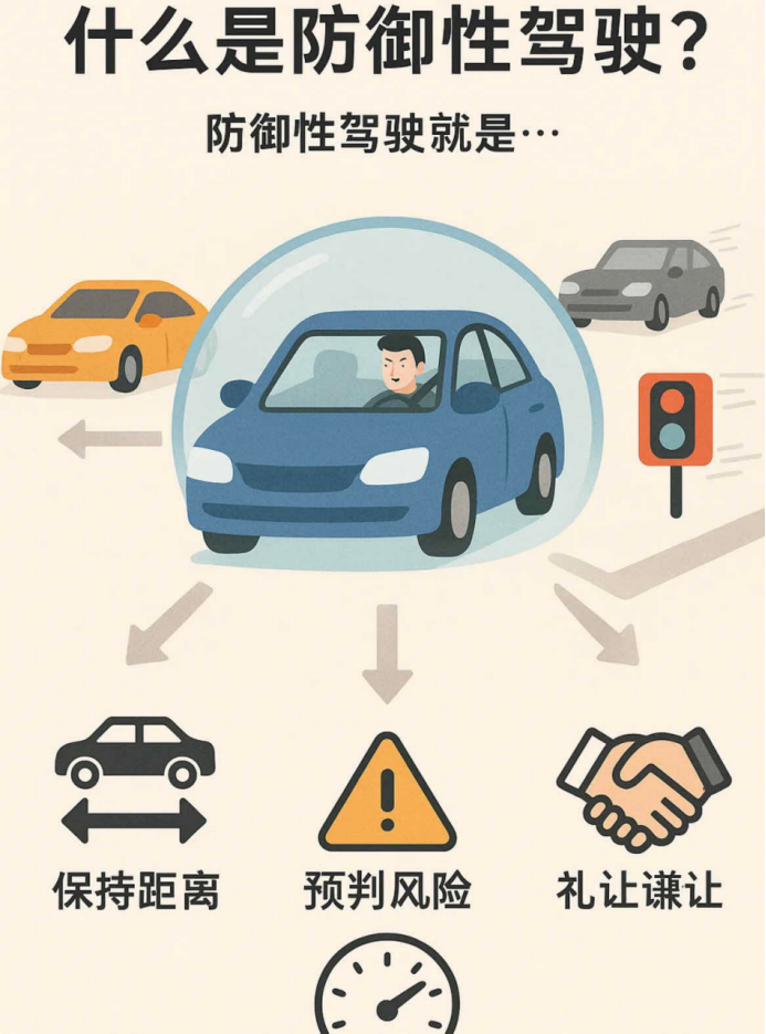 防御性驾驶是一套系统的驾驶理念和技巧。它要求驾驶员在严格遵守交通法规的基础上,始终保持清醒、预见性的安全意识,能够主动、准确地预见其他交通参与者(如其他驾驶员、行人、骑车人)可能出现的错误以及各种潜在的危险路况,并及时采取必要、合理、有效的措施,防止事故发生。